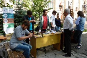 As a first step towards this great vision, Iurie and Victor organized an event in the yard of the National library of the Republic of Moldova, collecting tools and old equipment, and then using some of it in order to create various useful objects such as a cup heater, a laptop cooler and a lamp – together with the volunteers. As a result, about 25 people got involved and lots of useful electronic stuff and instruments was gathered, which is going to serve as a base for the future FabLab.