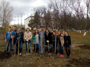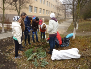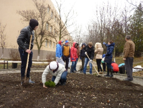 As a result, the project did take place on December 6, 2015, on the grounds of the Lyceum “I.Vazov” from Taraclia. It was supported by the alumnae of the volunteering program “Salut, Taraclia”, and has involved 16 local (students from 10th grade, a Peace Corps volunteer and some school staff) and one visiting volunteer. Altogether, they have planted 8 species of perennial flowers (47 pieces), 14 species of bushes (35 pieces) and 6 species of trees (29 pieces – catalpa, thuja, bastard acacia, pine etc.).